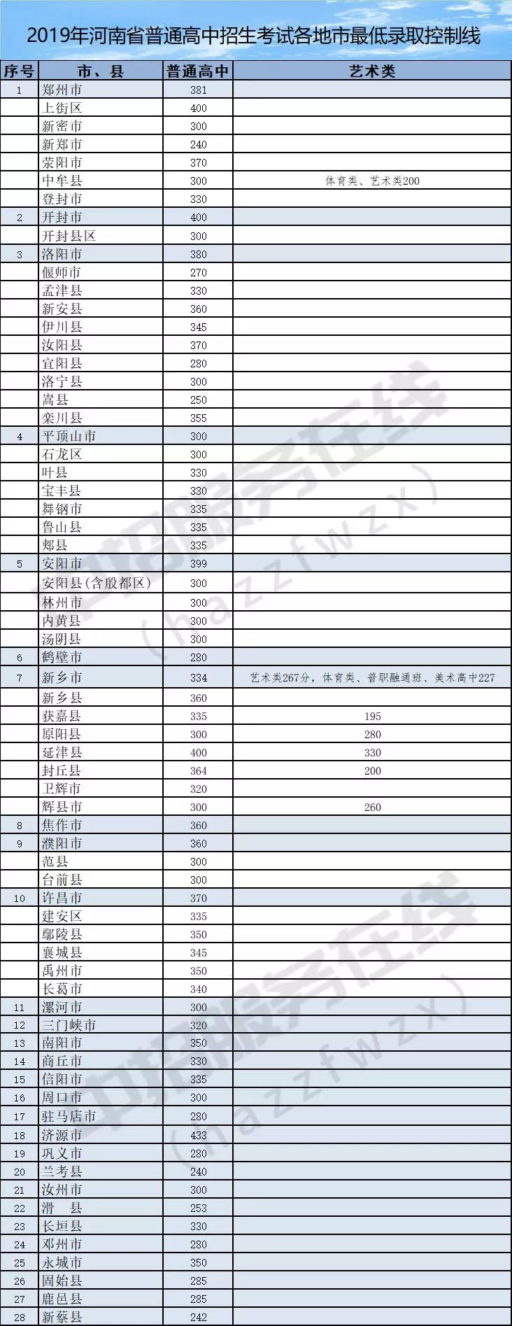 2019年河南省普通高中各地市最低錄取控制線 河南省 最低錄取控制線 未知/陽光 2019-07-25 次瀏覽 中招分數公布后,各位考生最關心的就是分數線和中招錄取的相關消息了。 2019年各地市中招最低錄取控制線新鮮出爐,快跟小編一起,先睹為快! 最低錄取控制線